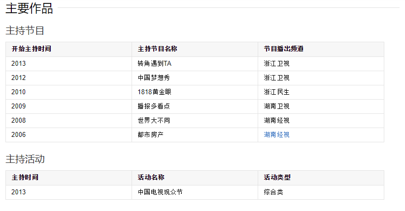代表作品:播報多看點、中國夢想秀、轉(zhuǎn)角遇TA